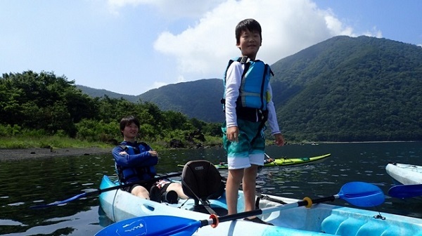 主にシットオントップやレジャータイプのカヤックを使用します。非常に安定感があるので、小さなお子様とも安心して漕ぐことができます。
